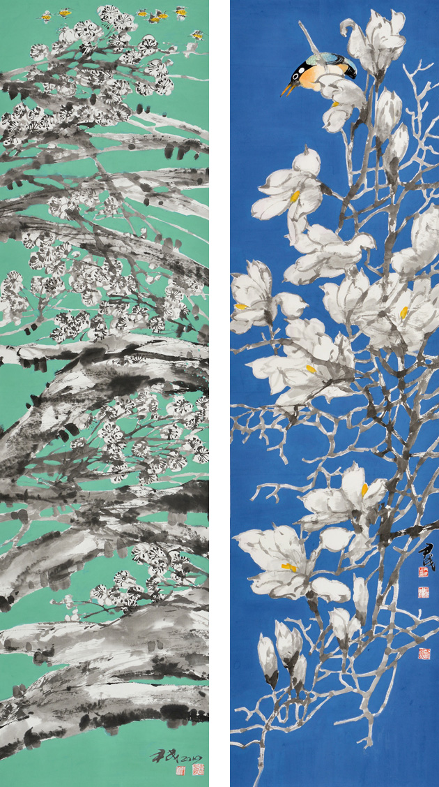 對于當(dāng)今的繪畫環(huán)境,尹成的認識漸漸清醒:“趨同”,是他眼中的“花鳥畫”繁榮之狀;“失意”,是他對“花鳥畫”時代病的初診;“另類”,是他對自我創(chuàng)作的起點劃界;“重構(gòu)”,則是尹成對“自我寫意”的前瞻性設(shè)定。說來玄遠并有形而上之空幻,但從畫家急切的表述中,我感知了真誠與自信。