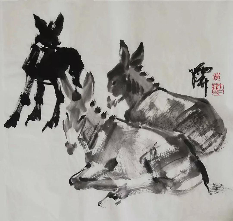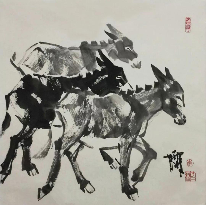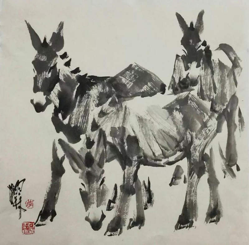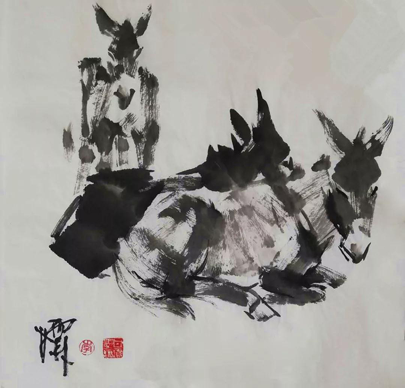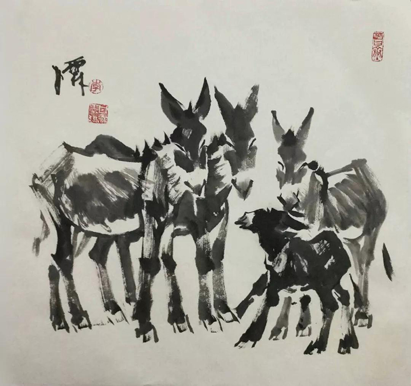 國畫作品《趕火車》2009年3月民革中央收藏;