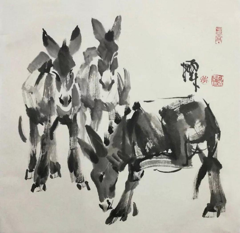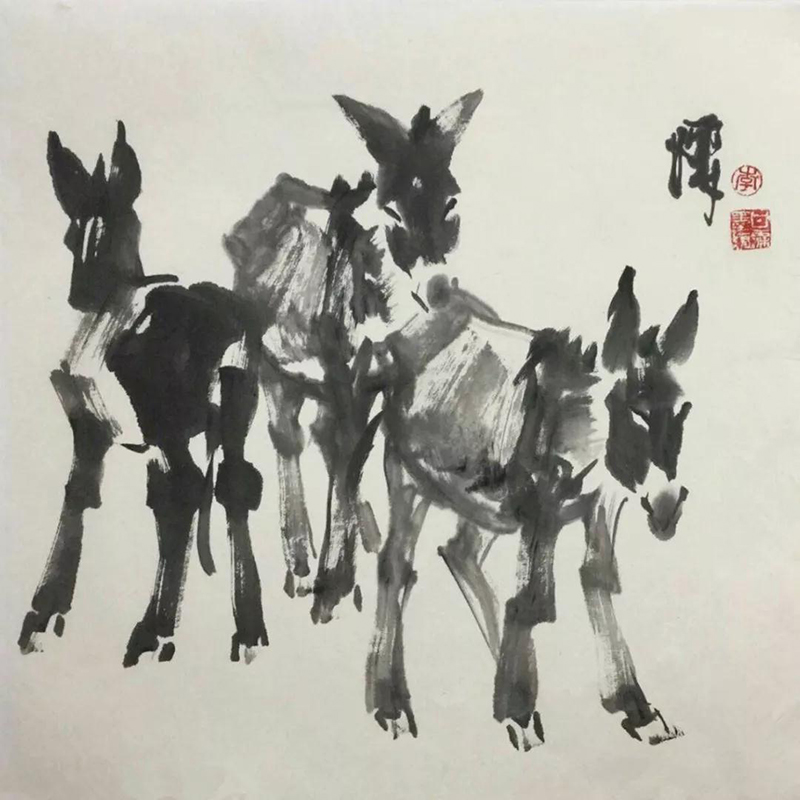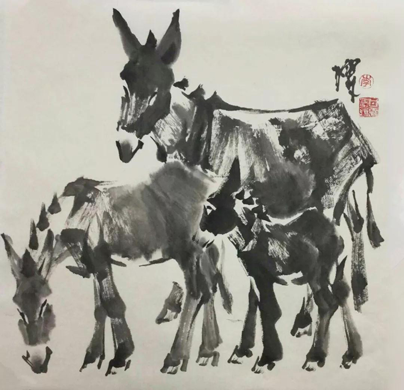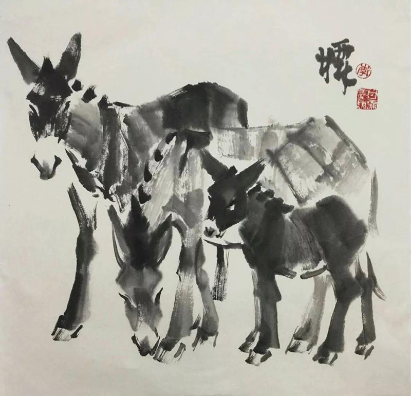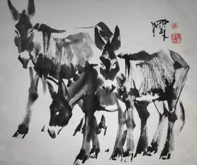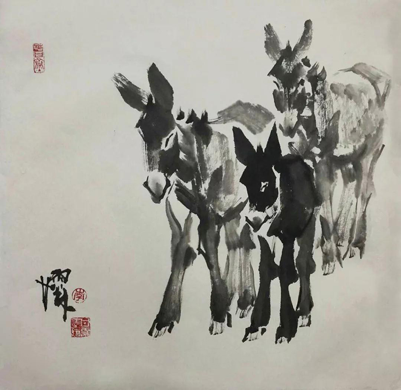 國畫作品《趕火車》2009年3月民革中央收藏;