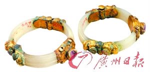 何家村的這兩副玉鐲出土時裝在蓮瓣紋銀罐內(nèi),銀罐器蓋墨書“玉臂環(huán)四”,可知玉鐲在當時被稱作“玉臂環(huán)”。