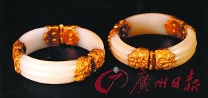古代玉器大都屬于藝術品,實用之外更具觀賞價值。三段式可以自由開啟的玉臂環(huán),不僅玉質(zhì)上乘,工藝精湛,設計構思也很巧妙,它利用黃金、白玉、珠寶三種材質(zhì)不同的質(zhì)地,色彩光澤,互相襯托,交相輝映,使玉臂環(huán)更顯華貴富麗。吳兢《貞觀政要·求諫第四》記載,唐太宗曾問諫議大夫褚遂良:“昔舜造漆器,禹雕其俎,當時諫者十有余人。食器之間,何須苦諫?”遂良對曰:“雕琢害農(nóng)事,纂組傷女工。首創(chuàng)奢淫,危亡之漸。漆器不已,必金為之。金器不已,必玉為之。”可見唐人對器物質(zhì)地的認識,玉第一,其次是金,再次是漆。最高貴的玉和金結合的臂環(huán)實為難得,迄今為止唐代遺物還僅見何家村遺寶中。