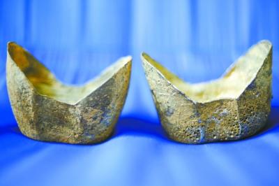 兩枚江漢關(guān)銀錠價值近百萬元。記者彭年 攝