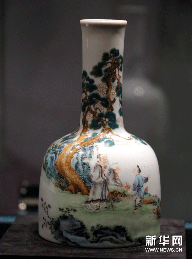 (3)乾隆琺瑯彩題詩(shī)《隱者不遇》搖鈴尊在28日舉行的拍賣會(huì)上以3538萬(wàn)港幣成交(11月25日攝)。
