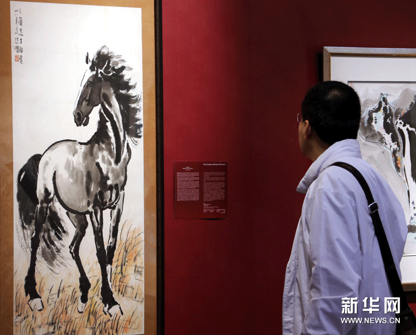 (2)一位觀眾在香港佳士得2012秋拍預(yù)展上觀看徐悲鴻的畫(huà)作《駿馬圖》(11月25日攝)。該作品在27日晚舉行的中國(guó)近現(xiàn)代畫(huà)拍賣(mài)會(huì)上以1096萬(wàn)港元成交。