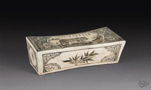 堂名款也是磁州窯的一大特色,如“百忍堂”“仁和館” 及“太平館”等。姓氏款見(jiàn)于各式瓷枕上,如“劉家造”“花瓶劉家造”“滏陽(yáng)陳家造”“陳家獅枕”和“王家造”等。