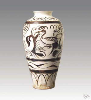 磁州窯,我國(guó)北方著名民窯,是中國(guó)宋代八大窯系之一。磁州窯歷史悠久,品種眾多、產(chǎn)量很大,具有鮮明的民族風(fēng)格與地方特色。其發(fā)展了刻花技法并創(chuàng)造性地采用了紅綠彩,其“白地黑花”裝飾是劃時(shí)代的創(chuàng)造,為宋代以后青花和五彩瓷的發(fā)展開(kāi)辟了廣闊的途徑。