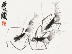 畫界一致認(rèn)為,齊白石青年時(shí)代的蝦,多為寫實(shí),甚至40歲以后還在臨摹徐渭和李復(fù)堂的蝦畫。這些不似成功的蝦畫練習(xí),恰恰鑄就了日后大器的基礎(chǔ)?v觀白石蝦,無(wú)論是形態(tài)的活潑與機(jī)警,還是墨色濃淡的隨心所欲,都充分顯示出齊白石對(duì)蝦形體動(dòng)態(tài)的熟稔。為了修正兒時(shí)的記憶,重溫少時(shí)的夢(mèng)想,他曾在案頭的水碗里養(yǎng)了幾只家鄉(xiāng)的蝦。它們的生動(dòng)活潑,不僅慰藉了鄉(xiāng)愁,平添了生活的樂(lè)趣,更激發(fā)了白石老人的創(chuàng)作靈感。閑來(lái)觀而察之,日日心摩神怡,蝦已然成為白石老人靈魂的重要組成部分。