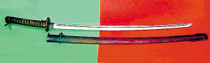 軍刀。為了昔日的榮光和今日的尊嚴(yán),在冰河之上,手執(zhí)軍刀、單膝跪地的老炮兒六爺成為永恒的風(fēng)景。日本軍刀源于我國(guó)唐代的中華大刀,由于其鋒利、柄長(zhǎng)、刃薄、力度恰到好處,而受到青睞。尤其是成長(zhǎng)于“文革”時(shí)期的小青年,更是把擁有一把軍刀當(dāng)成一件非常榮耀的事兒,六爺便是如此。筆者收藏的這把日本軍刀,為抗戰(zhàn)時(shí)期日本軍官所使用,和六爺使用的那把軍刀有些相似,雖然已經(jīng)有些年頭,但還很是鋒利。軍刀長(zhǎng)101厘米,刀鞘已經(jīng)銹跡斑斑,訴說(shuō)著年代滄桑,刀柄手握的部分已經(jīng)被磨得黃光閃閃,可見當(dāng)年使用之頻繁。兩把軍刀,一柄彰顯著情懷,一柄記錄著歷史,從某種意義上說(shuō),都有其收藏價(jià)值。