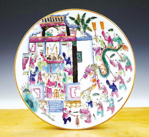 農(nóng)歷新年是我國最隆重的節(jié)日之一,國人不僅要闔家團圓,更要以各種方式進行慶祝。喜慶的氣氛,從臘月二十三的小年一直持續(xù)到正月十五元宵節(jié)。由于新春佳節(jié)自古有之,所以在前朝遺留下來的古玩器物上也常見表現(xiàn)新春題材的,比如說筆者收藏的這只清代粉彩盤。
