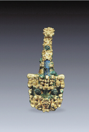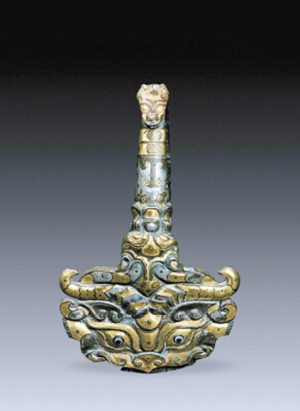 春秋戰(zhàn)國時期,青銅帶鉤已居主角的地位。成熟的青銅冶煉技術(shù),使帶鉤制作從一開始就處在一個很高的水平。而黃金和白銀以其眩目的光澤、艷麗的色彩,很早就進(jìn)入了帶鉤的藝術(shù)體系,使帶鉤具有藝術(shù)和財富的雙重價值。玉在中國文化中被認(rèn)為有君子之德,其潔白、細(xì)膩、珍稀、高貴,更為佩鉤者帶來一種脫俗內(nèi)斂之美。而鐵帶鉤的出現(xiàn)有重要意義,它最初的價值是超過青銅的,雖然韌性不如青銅,但硬度卻高過青銅,用來制作帶鉤,且多貼金貼銀之作,足以表明其高貴身份,只是因其銹蝕,保存下來的不多。其他一些特殊材質(zhì)的帶鉤,還有最早的玻璃制品,即琉璃帶鉤、水晶帶鉤,都表現(xiàn)出材料的高貴和不凡。