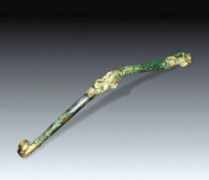 帶鉤雖小,卻是中國傳統(tǒng)服飾文化中的重要組成部分,在十分講究禮儀等級、非禮勿視的中國古代,佩鉤是件大事,它反映著佩用者的身份地位,代表著那一時期的摩登和時尚?梢哉f,各種最奢華的材料、最先進(jìn)的工藝、最時髦的設(shè)計,都用在了帶鉤的制作上,爭奇斗艷,以彰顯其身份地位的高貴。