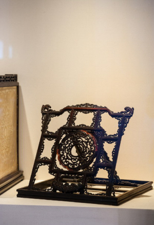舊時(shí)使用鏡架的人家,亦意味著經(jīng)濟(jì)富足,主人具有較高的生活品位,所以在鏡架的制作上也大都舍得花錢,除了材質(zhì)要優(yōu),還追求工藝的精美,講究每一個(gè)細(xì)節(jié)的搭配。故鏡架上的裝飾也是豐富多彩,打磨精細(xì)。架框正中部位多為吉祥圖紋,如“祥云捧日”、“花開富貴”、“四合如意”等等。頂端及每一個(gè)框格,也有紋飾,如夔紋、螭紋、蟠紋、回紋等傳統(tǒng)紋樣,從各個(gè)角度連接在一起,以喻“富貴不斷頭”的吉兆,并由此形成了雍容典雅、端莊華麗的整體風(fēng)格,標(biāo)定了中國(guó)傳統(tǒng)居室陳設(shè)文化的美學(xué)高度。