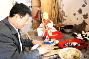 他告訴記者,這些棉花都是他自己染的,因為很多顏色的棉花在市場上買不到,而且自己動手染的棉花顏色更均勻。“紙扎的骨架所用的蘆葦桿和竹篾是我和妻子親手挑的。骨架做不好,整個人偶就沒神了。”李國祥介紹說。