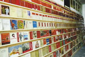 在這個不算太正規(guī)的博物館里,有不同版本的《毛主席語錄》和領(lǐng)導(dǎo)人文選、早期的報紙和雜志期刊、畫報,像章、連環(huán)畫、樣板戲、門票、書簽、老照片、信札、文獻資料、繡像、幻燈片、布票、糧票、畢業(yè)證、結(jié)婚證……種類十分豐富。在橫跨了一整面墻的展架上,整齊地擺滿了各種連環(huán)畫,除了像《白毛女》、《紅旗渠》、《渡江偵察記》等這些耳熟能詳?shù),還有很多看上去很陌生的連環(huán)畫故事。