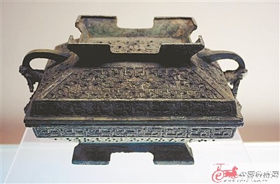 作為禮器,簠自然十分精美。這種精美不僅是指它上面常見鳥獸紋、饕餮紋、夔龍紋等繁冗紋飾,從構(gòu)造來看,簠也是獨一無二的。簠有蓋,但蓋子卻是一上一下兩個,只不過是用上面那個倒過來蓋住下面那個。這般“神奇”的造型,大約也只有簠了。簠通常呈長方形,口外侈,腹下收,下有四矩形短足,器形美觀而大方。從現(xiàn)在出土的文物看,簠最早出現(xiàn)在西周早期,在西周末年和春秋時期較為盛行,到了戰(zhàn)國時代,隨著社會的進步,簠漸漸退出歷史舞臺。所以說,簠乃是兩周青銅器的代表作。