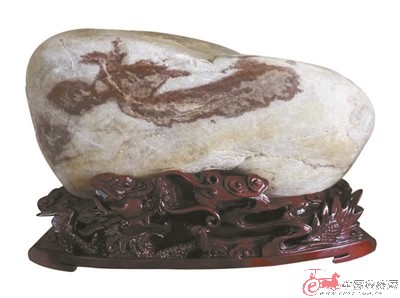 我在湖北曾挖出一塊鴿蛋大的灰白色石頭,上有藻類黑紋和紅色斑點,如同成熟的果林。多年后有人想用一塊玉和我交換,我沒同意。2005年去吉林出差,又買了兩個很小的松花湖浪木和一塊來自大連的魚化石,并寫詩志之。