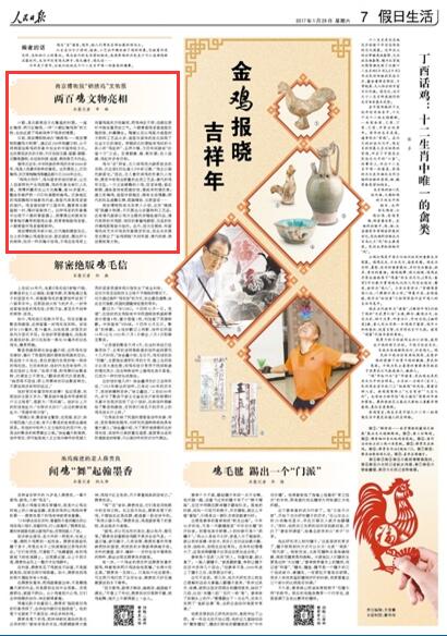 內(nèi)容摘要: 《人民日報》2017年1月28日7版 版面截圖原題:南京博物院“錦繡雞”文物展兩百雞文物亮相六朝,是古都南京文化繁盛的時期。一座紅陶房、兩只紅陶雞,一件&ldquo