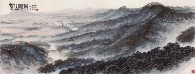 《茅山雄姿》創(chuàng)作于1965年初夏。這也是傅抱石去世前三個(gè)月創(chuàng)作的一幅巨作。當(dāng)時(shí),傅抱石應(yīng)邀赴南京東南方向的句容茅山寫(xiě)生,歸來(lái)完成了這幅寬2.76米、高1.06米的鴻篇巨制。畫(huà)面除卻描繪茅山的自然風(fēng)光,傅抱石還創(chuàng)造性地表現(xiàn)了古法中未曾表現(xiàn)過(guò)的工廠、大橋甚至新中國(guó)的城鎮(zhèn)生活場(chǎng)景。這些素材被精妙地安排在了一起,浪漫主義與寫(xiě)實(shí)主義互相結(jié)合!睹┥叫圩恕吩群笤凇豆饷魅?qǐng)?bào)》《新華日?qǐng)?bào)》上發(fā)表,足見(jiàn)藝術(shù)家本人對(duì)其滿(mǎn)意程度。在學(xué)界眼中,這是傅抱石最后一幅完整的作品,也是代表他最終達(dá)到的藝術(shù)高度的作品。