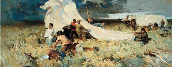 詹建俊 起家 140×348cm 布面油彩 1957年 中央美術(shù)學(xué)院美術(shù)館藏