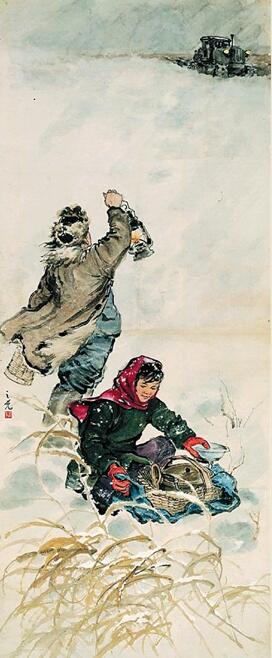 楊之光 雪夜送飯 292×120cm 中國畫 1959年 廣東美術(shù)館藏