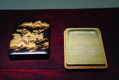 展覽第一單元“松花石硯——色綠而瑩 文理燦然”,重點(diǎn)展示康、雍、乾時(shí)期的御用硯,其中有帶御題硯銘“壽古而質(zhì)潤(rùn),色綠而聲清,起墨益毫,故其寶也”“以靜為用,是以永年”者,均為內(nèi)廷造辦處所制御用硯形式。松花石,又稱松花玉、烏拉石,產(chǎn)于東北長(zhǎng)白山松花江流域,因出自清代皇族龍興之地而受尊崇。松花石品種多樣,除綠色還有黃色、紫色、黑色等。乾隆中期以后,由于資源匱乏,特別是黃、綠色石材很少,不能滿足內(nèi)廷之需,致使松花石硯的制作逐漸衰微。