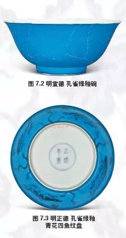 孔雀綠釉是一種以銅為著色劑的低溫色釉,因其助溶劑中加用硝(一種硝酸鹽的礦物質(zhì)),所以釉色十分鮮嫩,青翠欲滴,猶如孔雀羽毛般艷麗。孔雀綠釉自宋代磁州窯創(chuàng)燒,元代景德鎮(zhèn)燒制成熟。明代孔雀綠釉器根據(jù)考古發(fā)掘資料和傳世品分析,永宣時期至正德年間均有燒制,與元代相比制作更精美。但值得注意的是,宋元時期磁州窯制品由于胎和化妝土皆為生燒,胎、釉膨脹系數(shù)不匹配,造成胎釉結(jié)合不緊密,產(chǎn)生剝釉現(xiàn)象,嚴重者器表釉面甚至全部剝落。而明代官窯制品是在燒好的白釉器上施孔雀綠釉,然后再入窯二次燒成,釉與釉之間易結(jié)合,因而極少有剝釉現(xiàn)象產(chǎn)生。到了清康熙時期孔雀綠釉得到進一步發(fā)展,無論是呈色、造型還是刻劃裝飾工藝都更為精致。