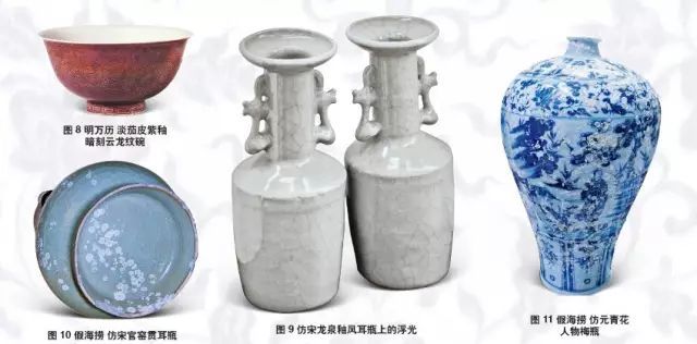現(xiàn)代仿品為了能使得釉面柔和、不刺目,以達到以假亂真的目的,通常都使用某些方法對釉面做舊去光。據(jù)景德鎮(zhèn)瓷窯師傅介紹,釉面做舊的許多老方法主要有兩種: