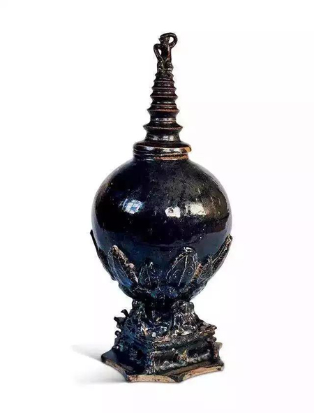 至唐代,黑釉瓷窯主要集中于北方,如陜西銅川耀州窯除主要燒制青瓷外,也燒制少量高質(zhì)量的黑釉產(chǎn)品;河南魯山郟縣的黑釉藍斑器很著名;河南鞏縣窯,除燒青瓷、白瓷和三彩之外,還生產(chǎn)黑釉瓷制品;山東淄博磁村窯,山西的渾源窯,安徽的蕭縣白土鎮(zhèn)窯等等都有大量的黑釉瓷產(chǎn)品。而南方諸省廣為流行的是褐釉器,南方各地采用灰胎和灰白胎制瓷,施醬褐釉,呈現(xiàn)的釉色多為醬褐或赤褐色,深黑如漆者較少見,其原因可能是隋唐時期褐釉器只是在燒制青瓷的瓷窯中兼燒的。