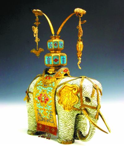 掐絲琺瑯象馱瓶