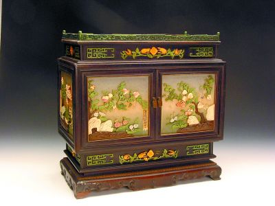 清紅木染牙三多花卉梳妝盒