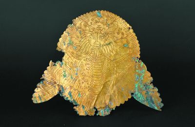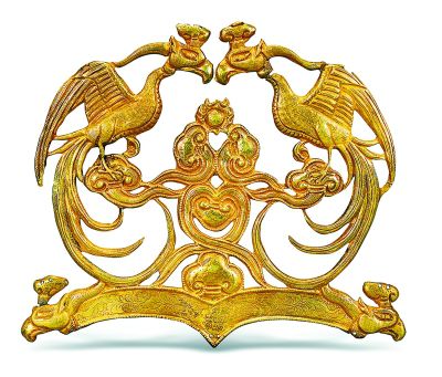 銀鎏金對鳳紋冠飾,凌源小喇嘛溝遼墓出土,凌源市博物館藏。