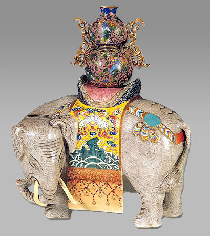 粉彩象馱寶瓶瓷塑