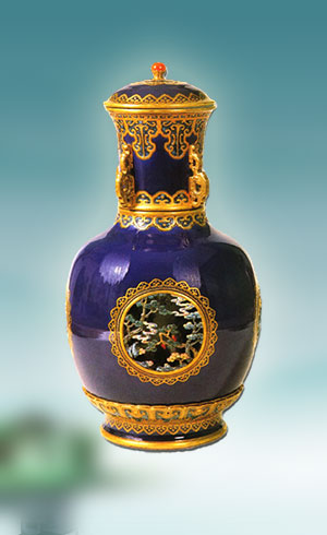 藍(lán)釉描金粉彩開光轉(zhuǎn)心瓶