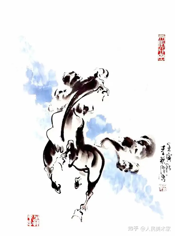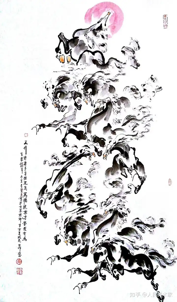 兩位藝術(shù)家雖然起步不同,但在畫(huà)馬這一領(lǐng)域卻有著驚人的相似之處。他們都以徐悲鴻為師,追求著馬的神韻與風(fēng)采;他們都經(jīng)歷了從一種藝術(shù)形式到另一種藝術(shù)形式的轉(zhuǎn)變,最終形成了自己獨(dú)特的畫(huà)風(fēng)。當(dāng)李繁民從油畫(huà)轉(zhuǎn)向國(guó)畫(huà)畫(huà)馬時(shí),他帶著對(duì)馬的深刻理解和熱愛(ài),將國(guó)畫(huà)的神韻與油畫(huà)的色彩巧妙地結(jié)合在一起;而北鴻則從書(shū)法國(guó)畫(huà)起步,最終將油畫(huà)的技法與道家的哲學(xué)思想融入其中,并開(kāi)創(chuàng)了獨(dú)樹(shù)一幟的超印象詩(shī)畫(huà)風(fēng)格。