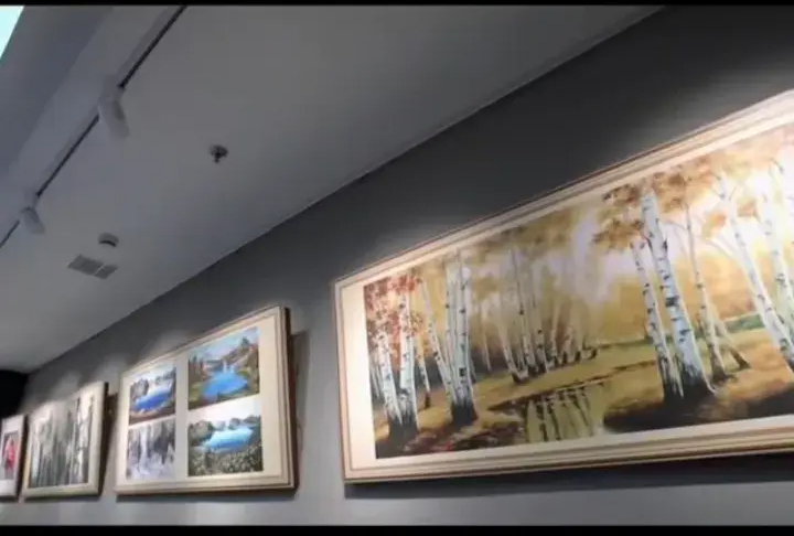 緊接著,您將來到第二展廳,這里詳細介紹了北鴻先生的藝術生涯。作為中國油畫巨匠、中國超寫實油畫領軍人物、中國寫實風景油畫領軍者以及中國超印象派詩畫創(chuàng)始人,國際級藝術大師,北鴻先生的藝術成就舉世矚目。同時,這里還展出了他的寫實風景油畫代表作《雪白樺》,令人陶醉。