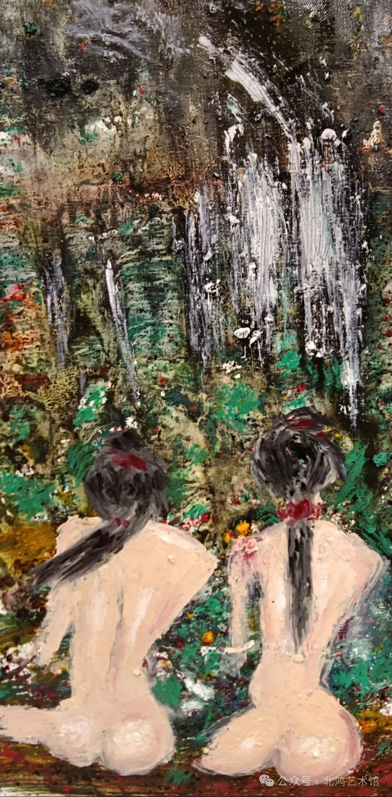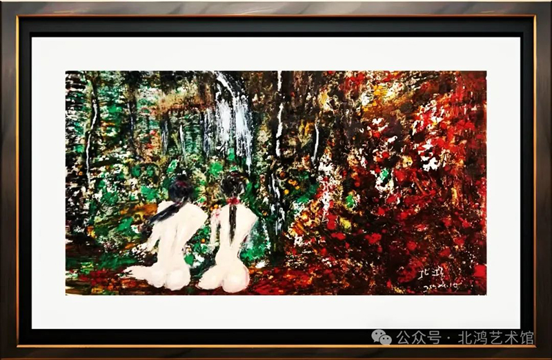 北鴻涉獵廣泛,畫馬有奔騰豪邁之感,靜物有靜謐悠遠(yuǎn)之韻,風(fēng)景有磅礴大氣之象。在《初秋~蜜語》中,他在人物繪畫領(lǐng)域再次展現(xiàn)出卓越的能力。他用細(xì)膩的筆觸和精妙的色彩,深入探尋閨蜜的內(nèi)心世界,同時將背景渲染得美輪美奐。這幅作品無疑是北鴻對美的深入探尋與創(chuàng)新表達(dá),是他在藝術(shù)領(lǐng)域開拓的見證。它如同畫壇初秋天空中一顆璀璨的星辰,散發(fā)著獨特而迷人的光芒,讓每一位觀賞者都能深刻感受到藝術(shù)與情感交融的魅力,沉浸其中,回味無窮。