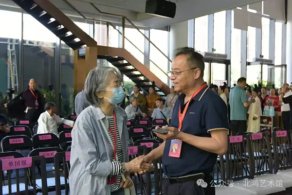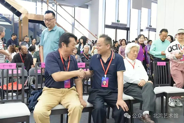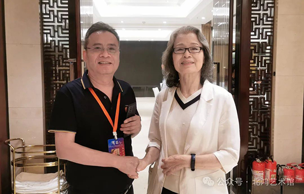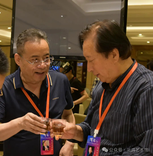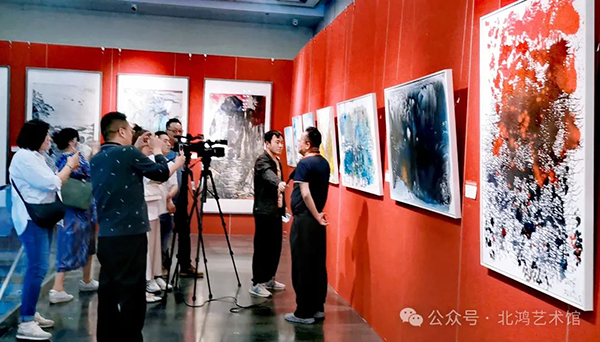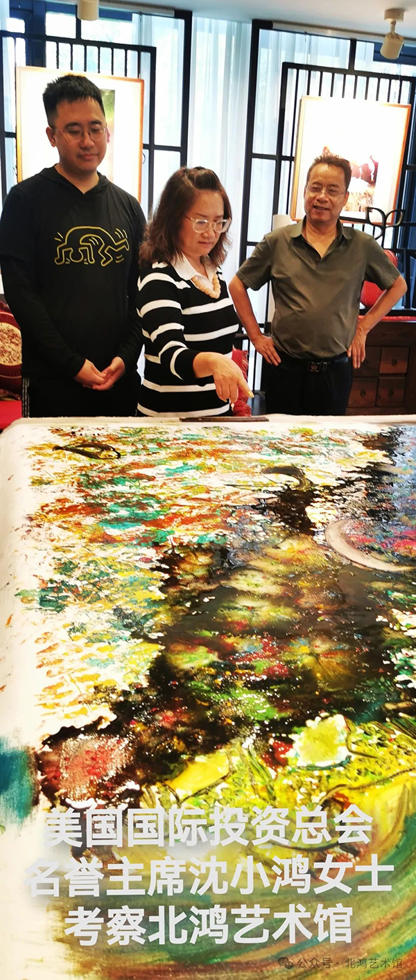 5 月,在北京人民美術(shù)出版社畫(huà)展上,北鴻結(jié)識(shí)了著名藝術(shù)評(píng)論家陳傳席。陳傳席對(duì)北鴻先生的油畫(huà)超印象詩(shī)畫(huà)給予了極高評(píng)價(jià),他的贊嘆之詞進(jìn)一步印證了北鴻藝術(shù)創(chuàng)作在專(zhuān)業(yè)領(lǐng)域的獨(dú)特價(jià)值與創(chuàng)新性。這一交流互動(dòng),不僅是藝術(shù)思想的碰撞與交融,也為北鴻藝術(shù)在國(guó)內(nèi)美術(shù)界的傳播與深入探討提供了新的契機(jī)與動(dòng)力。同時(shí)參展的大家還有王仲、王天勝等。