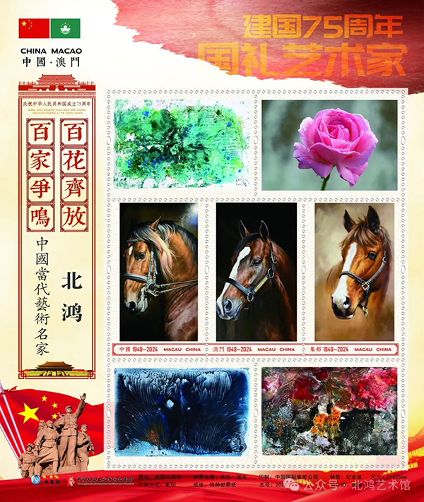 在建國(guó) 75 周年之際,北鴻的藝術(shù)影響力延伸到了國(guó)際郵票領(lǐng)域,其作品形象榮登聯(lián)合國(guó),法國(guó),葡萄牙,澳門(mén)郵政聯(lián)合發(fā)行的郵票、郵冊(cè)。這些郵票作為文化交流與傳播的特殊載體,將北鴻的油畫(huà)藝術(shù)帶向了世界的各個(gè)角落,讓更多人能夠通過(guò)郵票這一普及性的文化產(chǎn)品領(lǐng)略到中國(guó)油畫(huà)的獨(dú)特魅力,極大地拓寬了其藝術(shù)傳播的廣度與深度。同時(shí),在建國(guó) 75 周年“藝術(shù)為人民”的主題倡導(dǎo)下,北鴻榮獲《中國(guó)書(shū)畫(huà)報(bào) 》“2024 年度藝術(shù)人物”稱(chēng)號(hào),再次強(qiáng)調(diào)了他的藝術(shù)創(chuàng)作與人民大眾審美需求的緊密聯(lián)系以及對(duì)社會(huì)文化藝術(shù)發(fā)展所做出的積極貢獻(xiàn)。