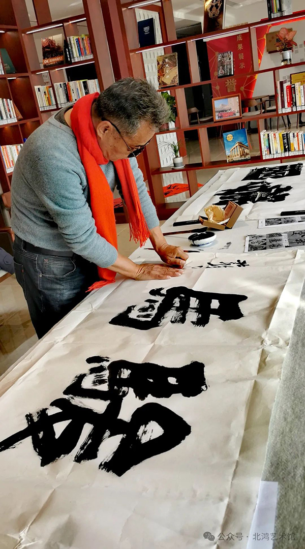 北鴻,這位在油畫界享有盛譽的一代宗師,其藝術成就令人矚目。他不僅在油畫領域開創(chuàng)“超印象詩畫”,站在中國超寫實之巔,與冷軍齊名,還以道家文化融入油畫,實現(xiàn)了中西合璧的獨特風格。他的作品在國際上備受贊譽,被海外國政商顯要及畢加索后裔等藝術館、博物館收藏。2024年更是大放異彩,《人民日報》(海外版)發(fā)布中國超寫實進入“北鴻時代”,其超印象詩畫在北京發(fā)布時受到高度贊揚,還參加了巴黎奧運文化國際藝術展和法國巴黎盧浮宮國際藝術展等,引發(fā)眾多媒體報道。同時,他還是一位印象派詩人,詩集《雨太猛沖垮夏季》問世。在此次活動中,北鴻大師展現(xiàn)了他在書法上的深厚功底,每一個字都仿佛是他藝術理念的另一種呈現(xiàn),遒勁有力,別具一格。