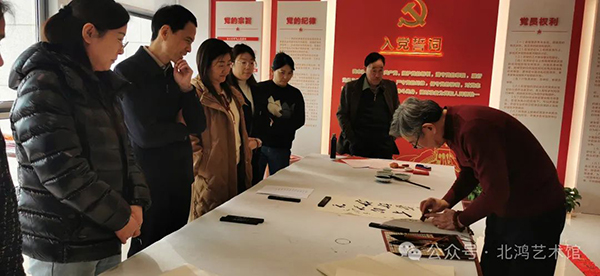 三位大師在現(xiàn)場全神貫注地書寫,周圍的職工們圍聚在一起,目不轉(zhuǎn)睛地欣賞著大師們的創(chuàng)作過程,時不時發(fā)出贊嘆之聲。每一副春聯(lián)、每一個“福”字都飽含著大師們對職工們的新春祝福,不僅具有極高的觀賞價值,更是不可多得的藝術收藏珍品。