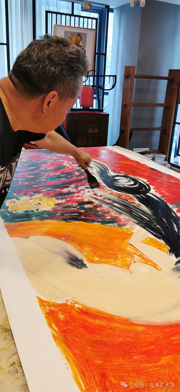 這幅畫(huà)作具有濃郁的油畫(huà)質(zhì)感,其厚重的色彩、豐富的層次和細(xì)膩的筆觸,無(wú)不彰顯出油畫(huà)藝術(shù)的獨(dú)特魅力。油畫(huà)顏料的特性使得色彩能夠在畫(huà)布上呈現(xiàn)出飽滿(mǎn)而濃郁的效果,北鴻巧妙地利用這一特點(diǎn),將紅色的濃烈、黑色的深沉、黃色的明亮和綠色的清新表現(xiàn)得淋漓盡致。每一筆觸都仿佛蘊(yùn)含著藝術(shù)家的情感與力量,在畫(huà)布上留下了深深的印記。這種油畫(huà)質(zhì)感不僅增強(qiáng)了畫(huà)面的視覺(jué)沖擊力,更賦予了作品一種永恒的藝術(shù)魅力,使其經(jīng)得起時(shí)間的考驗(yàn)和觀者的細(xì)細(xì)品味。