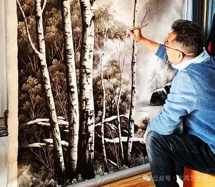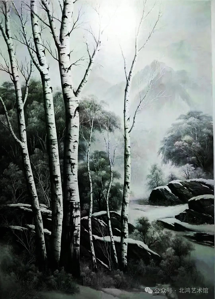 油畫巨匠北鴻《雪白樺》:自然詩性與超寫實(shí)美學(xué)的交融協(xié)奏
