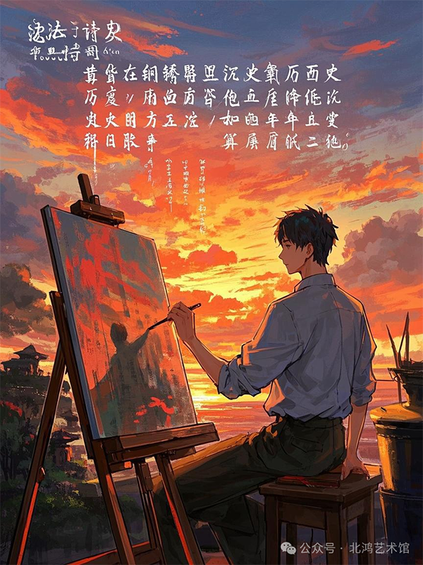 在南京師范大學(xué),中文系與美術(shù)系的雙重浸潤,為北鴻提供了得天獨厚的藝術(shù)滋養(yǎng)。中文系深厚的文學(xué)底蘊,讓他領(lǐng)略到了中國古典詩詞的博大精深;美術(shù)系濃郁的藝術(shù)氛圍,則激發(fā)了他對繪畫藝術(shù)的無限熱愛。在這兩種截然不同的藝術(shù)形式的碰撞與交融中,北鴻的藝術(shù)靈感如泉涌般不斷涌現(xiàn)。