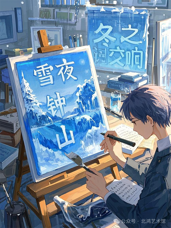 1983 年的一個冬夜,工作室里彌漫著一股緊張而又興奮的氣氛。北鴻獨自坐在畫架前,凝視著眼前的畫布,心中涌動著一種前所未有的創(chuàng)作沖動。突然,他靈機一動,獨創(chuàng)了“雙軌創(chuàng)作法”。他左手執(zhí)油畫刮刀,用力堆砌著《雪夜鐘山》的冷色調(diào),刮刀在畫布上劃過,發(fā)出沙沙的聲響,仿佛在奏響一曲冬日的贊歌;右手持鋼筆,在稿紙上快速書寫著《冰河紀事》,鋼筆尖在紙上滑動,留下一行行靈動的文字。顏料與墨跡在午夜的空氣中交融,形成了一種獨特的藝術(shù)氛圍。