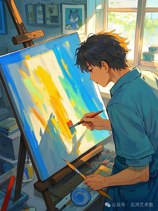 隨后,他又以莫奈式的色點覆蓋,莫奈作為印象派的代表畫家,以其對光與色的獨特表現(xiàn)而聞名。北鴻借鑒莫奈的色點技法,為畫面注入了靈動的光影效果。