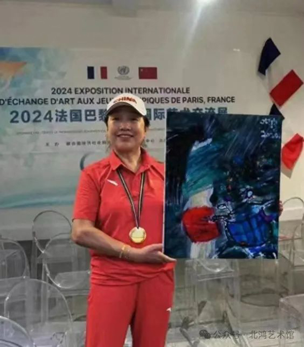 2024 年巴黎奧運(yùn)會期間,北鴻作為全球 33 位被聯(lián)合國特邀的藝術(shù)大師之一參展,其畫作《月光美女》以其獨特的魅力吸引了眾多目光,最終被殘奧冠軍劉玉坤收藏。