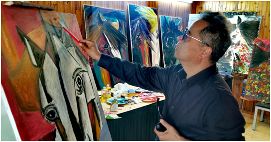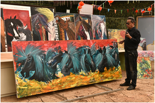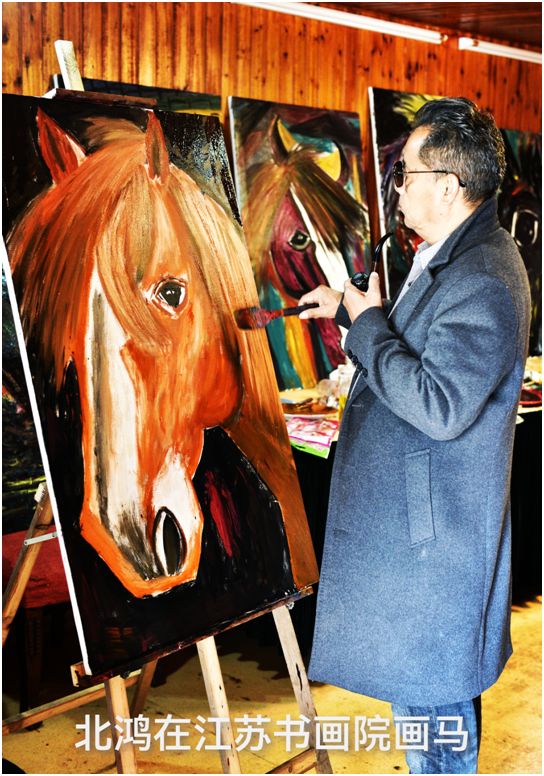 北鴻在江蘇書畫院創(chuàng)作超印象詩畫《馬》
