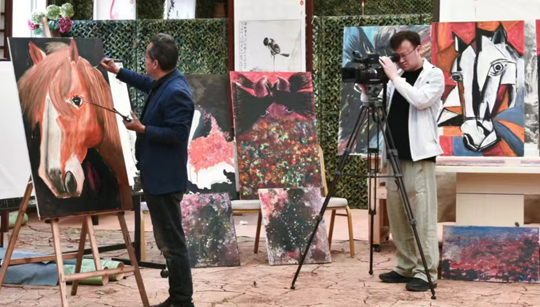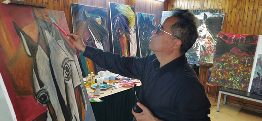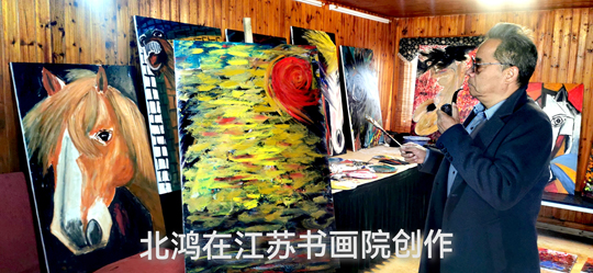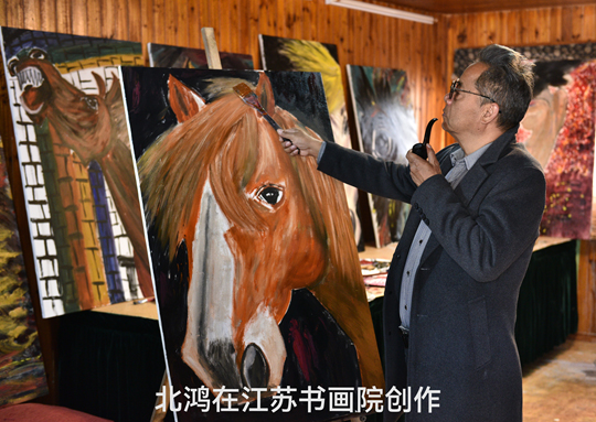 北鴻在江蘇書畫院創(chuàng)作超印象詩畫油畫馬