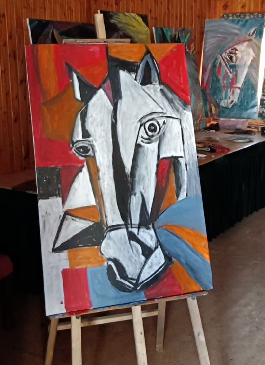 畢加索在《亞威農(nóng)少女》(1907)中以幾何化多重視角解構(gòu)物體,開創(chuàng)立體主義流派,顛覆了文藝復(fù)興以來的空間敘事。北鴻則在《駿馬》系列中展現(xiàn)極致寫實功力后,于《超印象:非常道》系列轉(zhuǎn)向抽象與寫意的融合,通過"超印象詩畫"重構(gòu)自然與人文的視覺關(guān)系。二者均以"破界"為核心,但路徑不同:畢加索的立體主義強調(diào)形式的重組,而北鴻的超印象派注重意境的詩性表達。