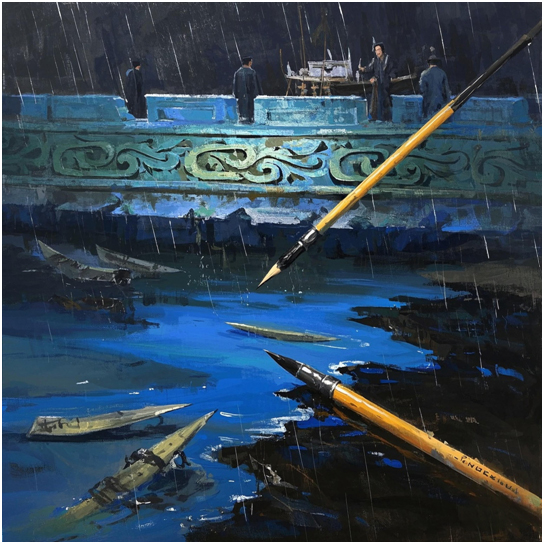 決選當(dāng)夜,阿爾諾河突然倒流,河水在韋奇奧橋下形成巨大的太極漩渦。北鴻將徐悲鴻1942年所用硯臺(tái)的殘墨倒入河中,所有參賽畫作的金箔同時(shí)飛起,在圣母百花大教堂尖頂拼出《洛神賦》的章法。當(dāng)評(píng)審團(tuán)宣布金獎(jiǎng)得主時(shí),彼埃羅•德拉•弗蘭切斯卡的《基督受洗》中,那只著名的白鴿突然轉(zhuǎn)向東方振翅。